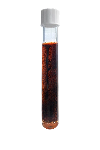 Both tubes contain soft agar, a medium used to grow bacteria. The same virulent E. coli strain was added to each tube. The untreated sample shows visible bacterial growth, while the tube with GutClear® shows no visible growth.